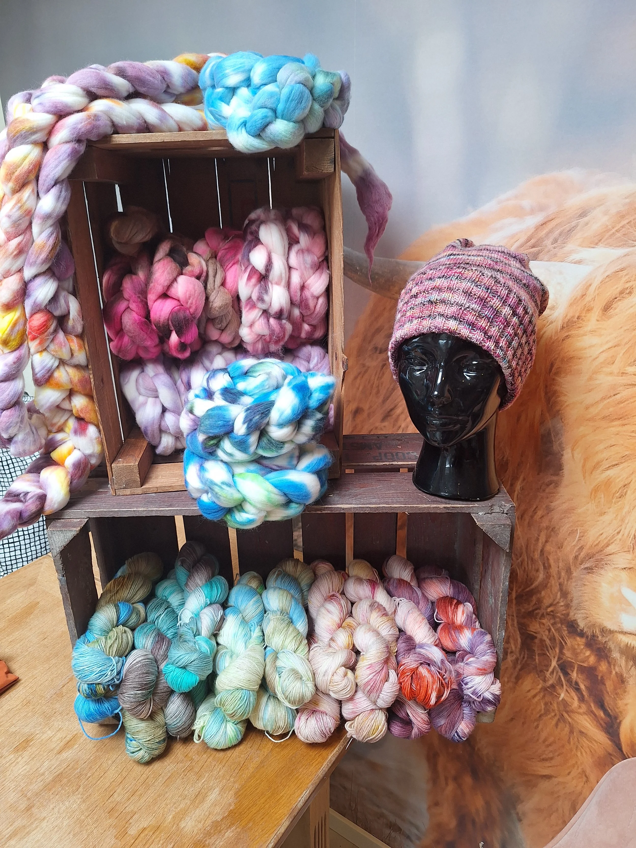 Froukjes wol boutique is een webwinkel met handgeverfde garens en spinwol. Op markten en beurzen probeer ik de liefde voor wol over te brengen op andere creatievelingen. Ik heb spintollen bij me om deze te demonstreren. En natuurlijk een goed gevulde kraam met strengen wol en mooie lonten om te spinnen.