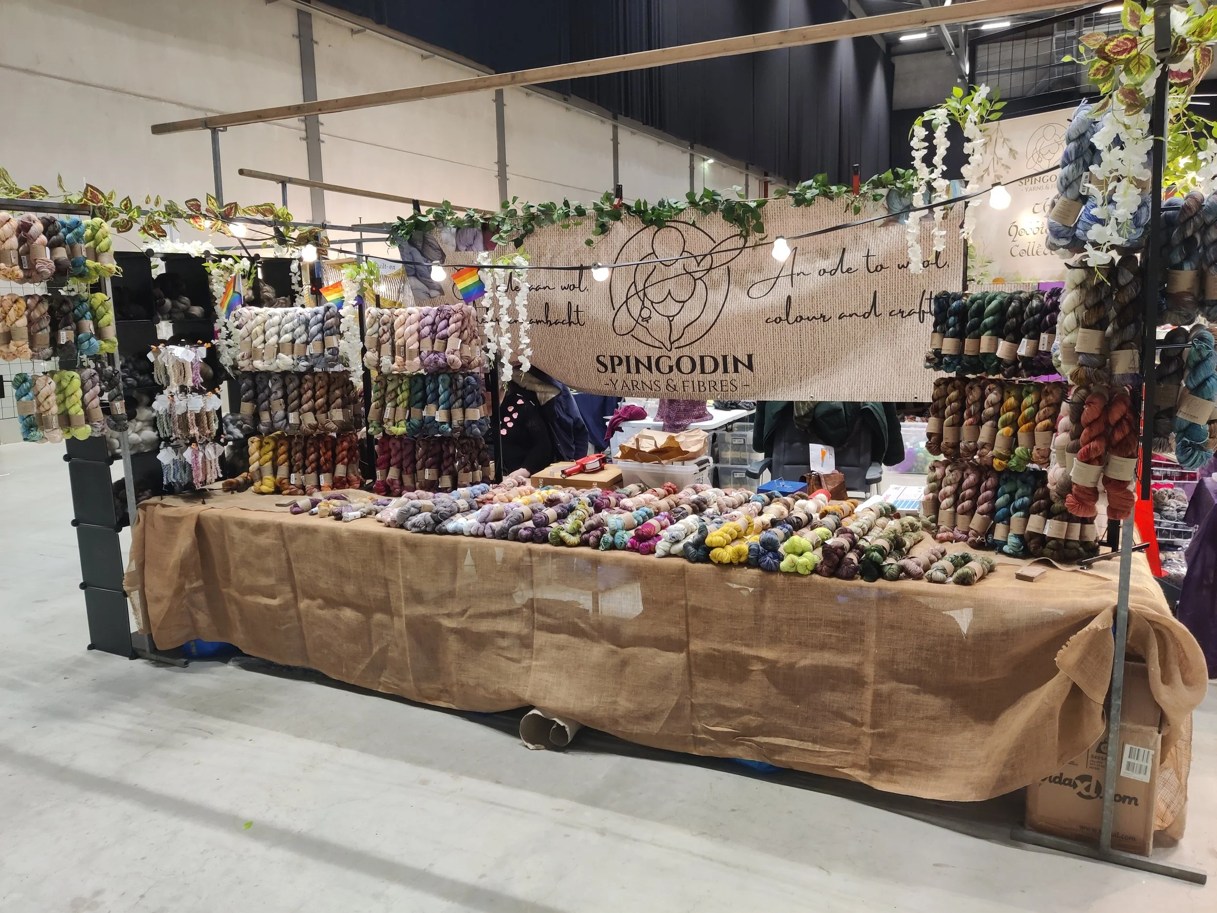 Bij de sprookjesachtige Spingodin kraam vind je handgeverfde garens en spinwol in kleuren geïnspireerd op natuur, folklore en fantasy. Verder tref je bij ons ongeverfde spinwol van diverse schapenrassen en vezelmengsels, en diverse handgemaakte accessoires zoals botanische steekmarkeerders en botanische spintollen: voor makers die graag een beetje magie in hun werk willen.